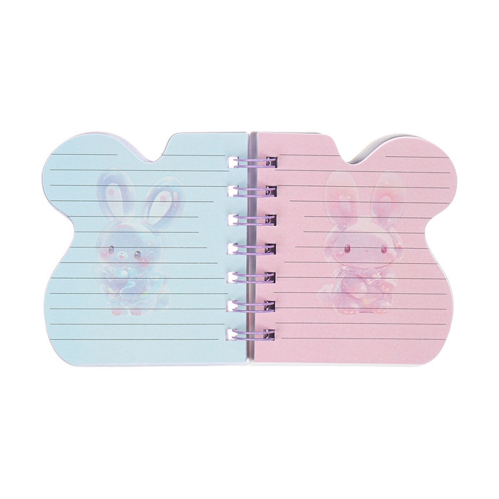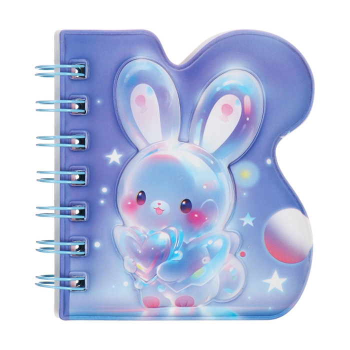 Записная книжка подарочная на гребне 80л,линия, цветной блок,обложка ПВХ 3D Зайка(10х10,5см) 10539
