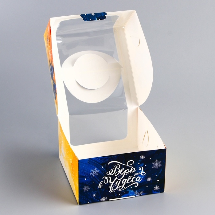 Главной особенностью коробки является прозрачное окно, которое позволяет эффектно демонстрировать бенто-торт, не открывая упаковку, сохраняя его свежесть и аккуратный вид. Внутри коробка снабжена вставкой, обеспечивающей надежную фиксацию торта, чтобы он оставался на месте при транспортировке.