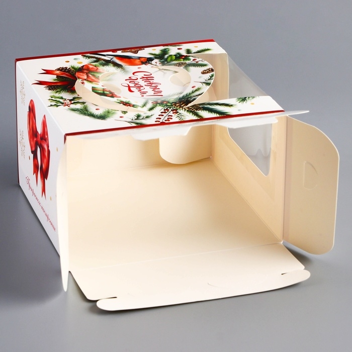 Компактный размер коробки делает её идеальной для порционных тортов, а праздничное оформление — отличным выбором для подарка, новогодних мероприятий или продаж в кафе и кондитерских.