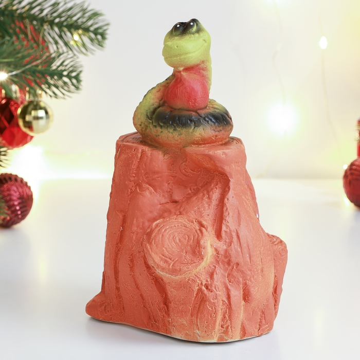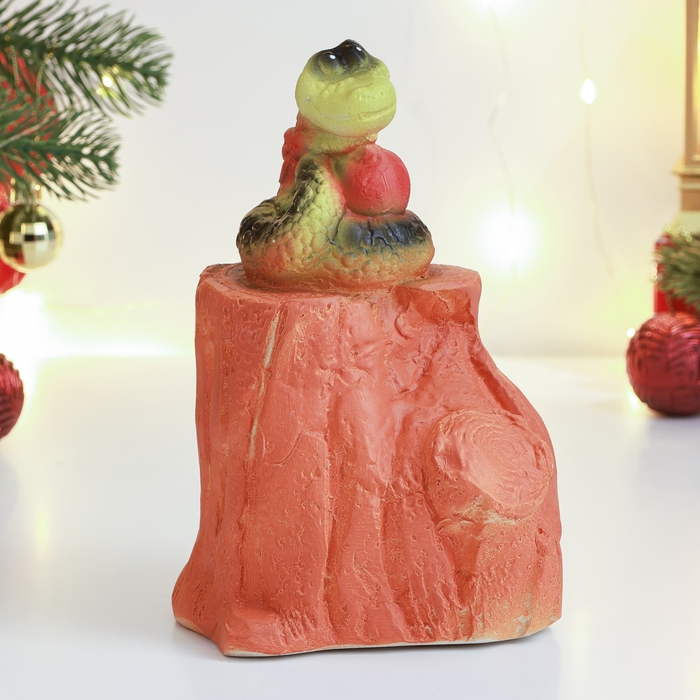 Новый год. Символ 2025. Копилка "Змея на пне" 10х10х18см