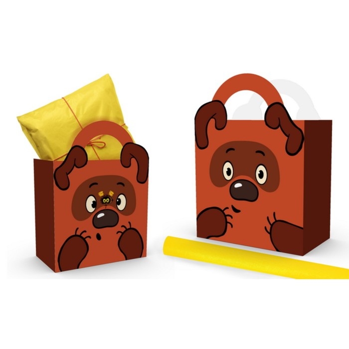 Пакет подарочный с упаковочной бумагой тишью, 22х22х12 см, Винни-Пух