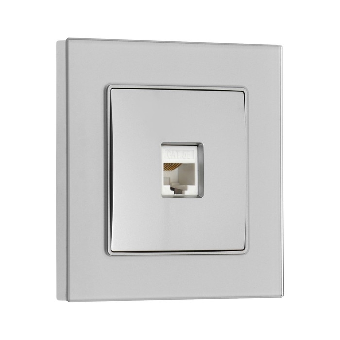 Розетка компьютерная одноместная TOT Glossy Glass, скрытая, стекло, серебристая