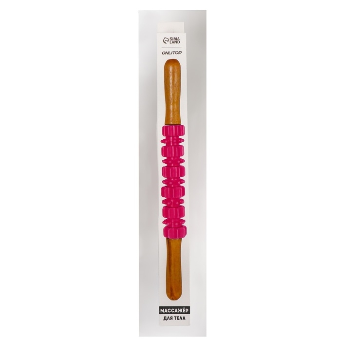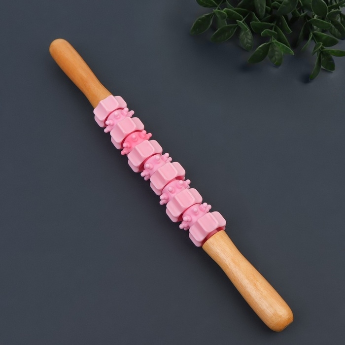 Массажёр «Скалка», универсальный, 37,5 × 4 см, деревянный, 11 колёс, цвет розовый