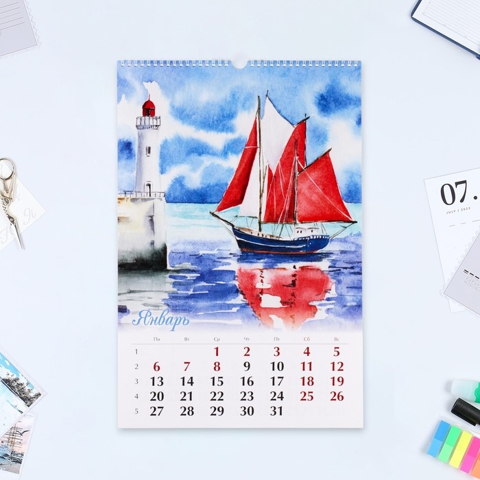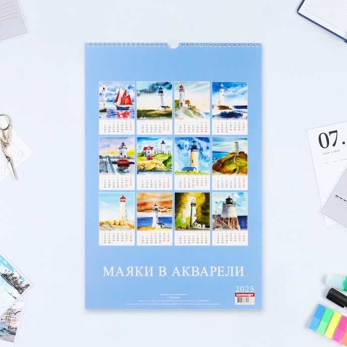 Календарь перекидной на ригеле А3 "Маяки" 2025, 32 х 48 см