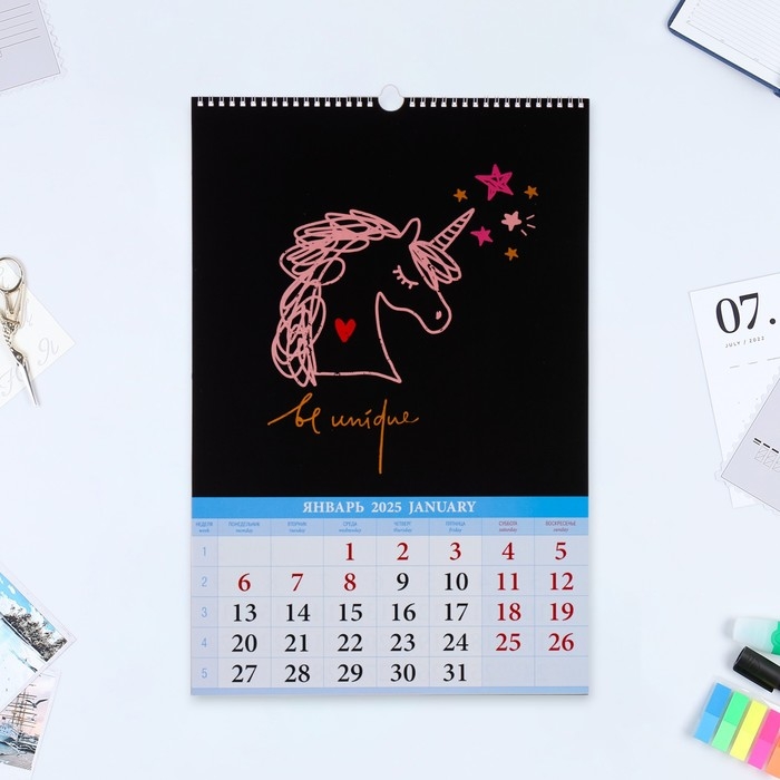 Календарь перекидной на ригеле А3 "Единорожки" 2025 год, 32 х 48 см