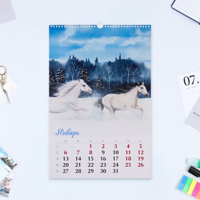 Календарь перекидной на ригеле А3 "Кони в акварели" 2025 год, 32 х 48 см