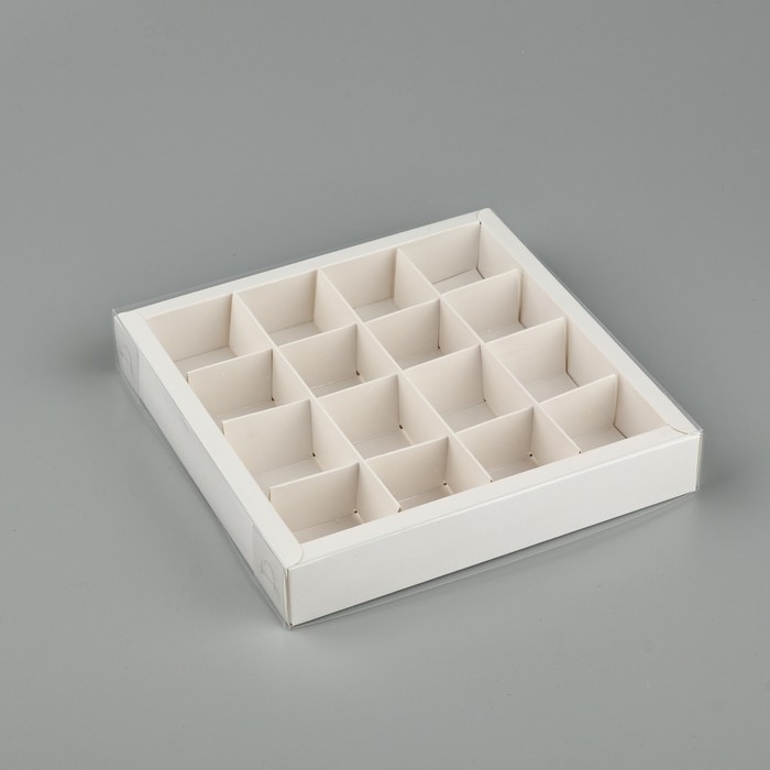 Коробка под 16 конфет с ячейками «Белая», 19 х 19 х 3 см