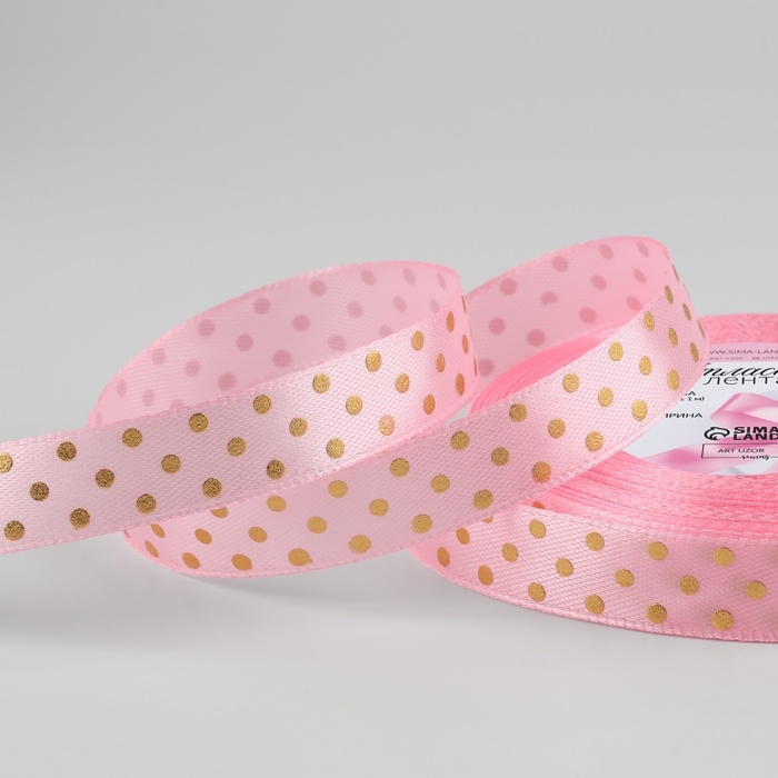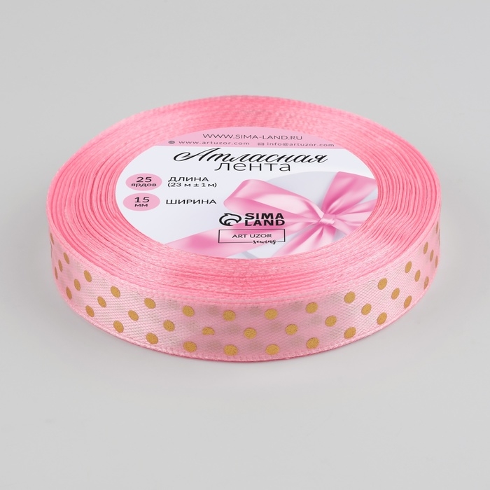Лента атласная «Горошек», 15 мм × 23 ± 1 м, цвет розовый №004