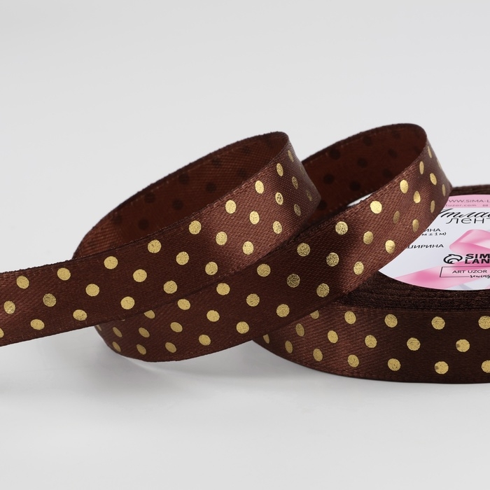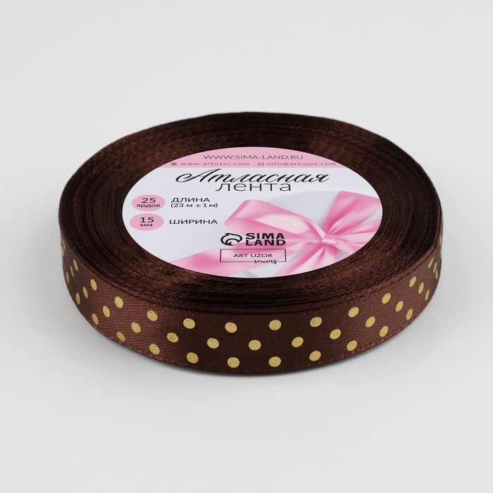 Лента атласная с тиснением «Горох», 15 мм × 23 ± 1 м, цвет коричневый №32