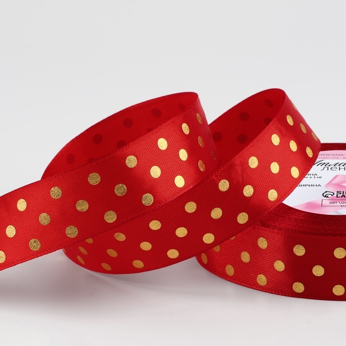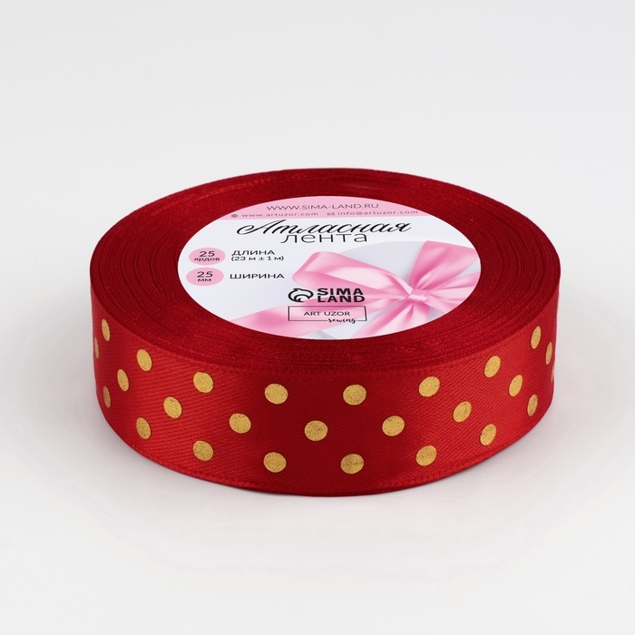 Лента атласная с тиснением «Горох», 25 мм × 23 ± 1 м, цвет красный №26