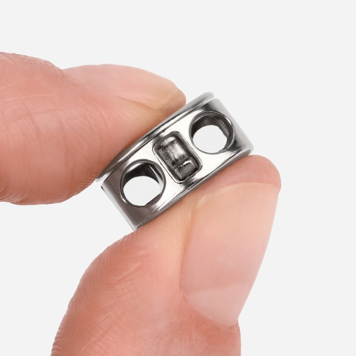 Фиксатор для шнура, двойной, d = 5 мм, 15 × 10 мм, 5 шт, цвет серебряный