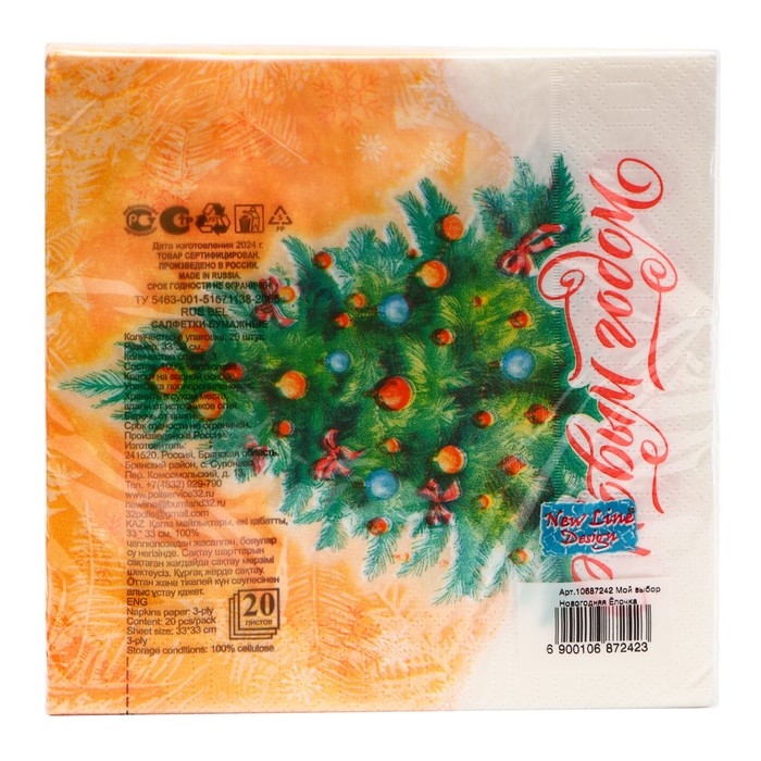Новогодние салфетки бумажные Мой выбор «Новогодняя Ёлочка» 3 слоя, 33х33 см, 20 шт