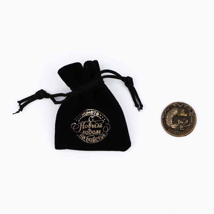 Монета в мешочке новогодняя «С Новым счастьем!» на Новый год, диам. 2.5 см