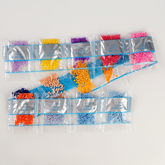 Ребёнку предстоит разложить карандашом кристаллики, постепенно заполняя рисунок элементами соответствующего цвета. Основа с клеевым покрытием будет надёжно удерживать стразы.