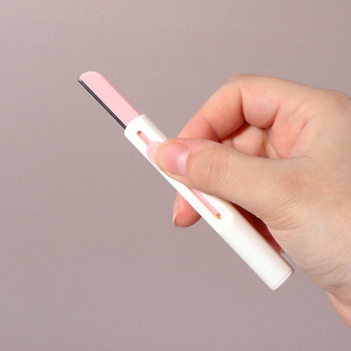 Бритва для коррекции бровей, со сменными бритвами - 4 шт, цвет белый/розовый