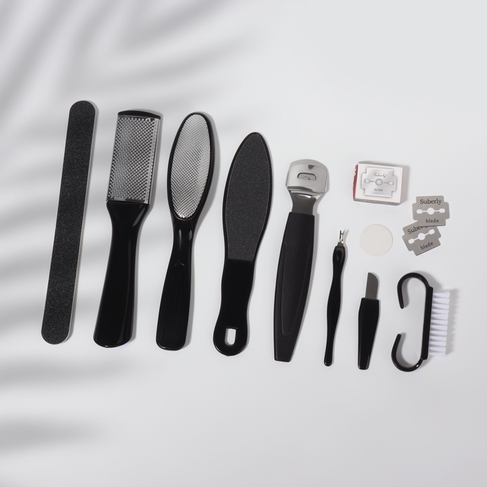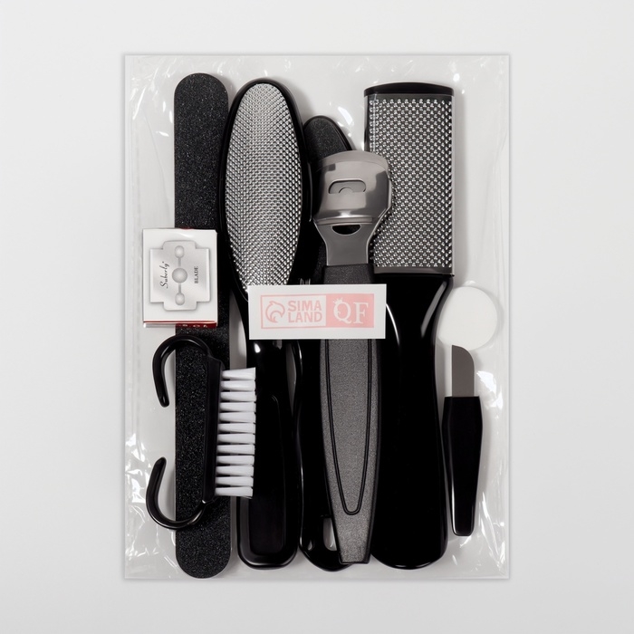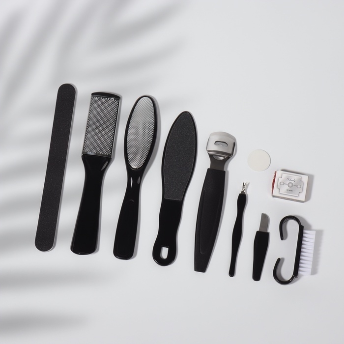 Набор для педикюра, 9 предмета, в пакете, цвет чёрный