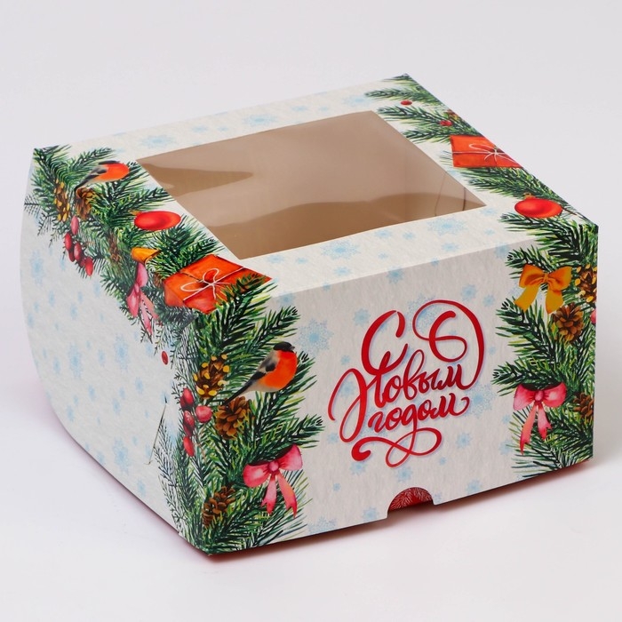Новый год. Коробка для 4 капкейка с окном "Новогодние подарки", 16 х 16 х 10 см, упаковка