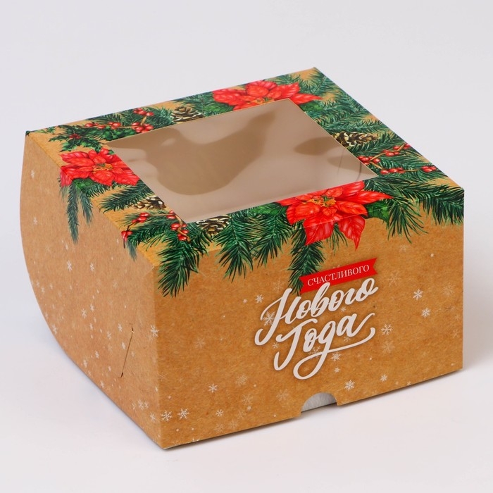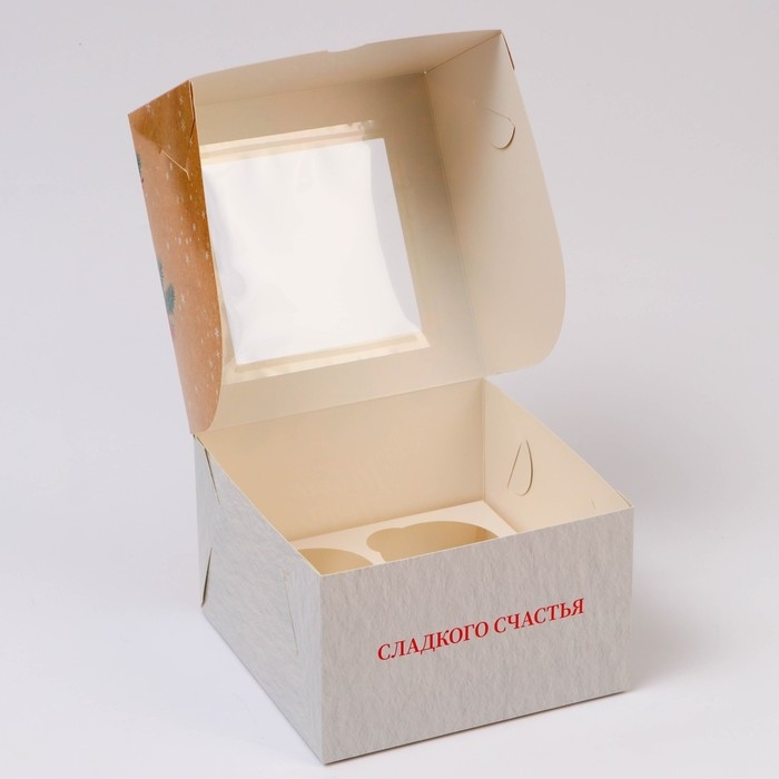 Новый год. Коробка для 4 капкейка с окном "Сладкого Нового года!", 16 х 16 х 10 см, упаковка