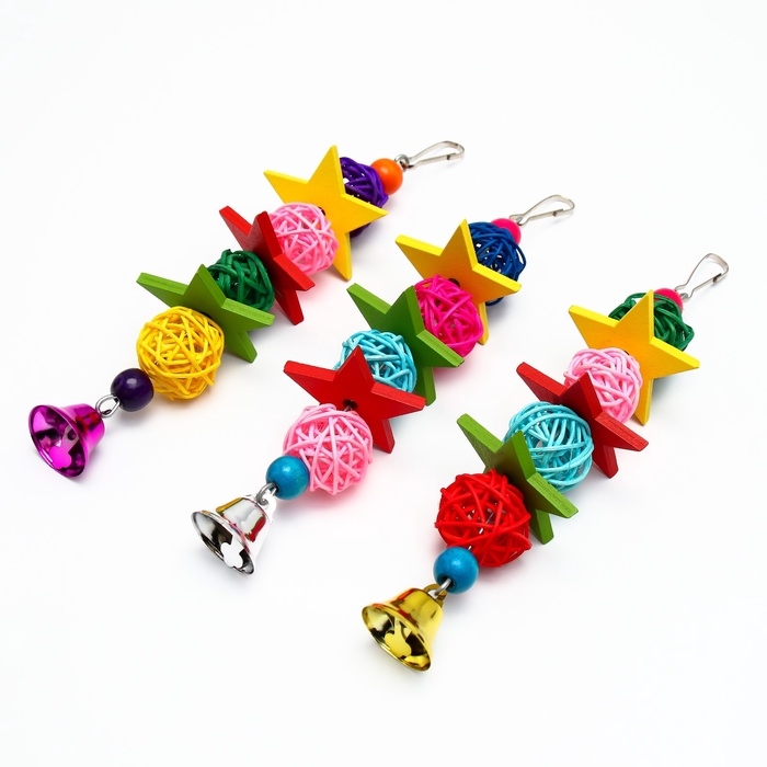 Игрушка выполнена из качественных, безопасных для птиц материалов, что делает ее надежным выбором для ваших любимцев. Все компоненты, включая колокольчик и бусины, тщательно протестированы на отсутствие токсичных веществ, что гарантирует безопасность вашего питомца во время игры.