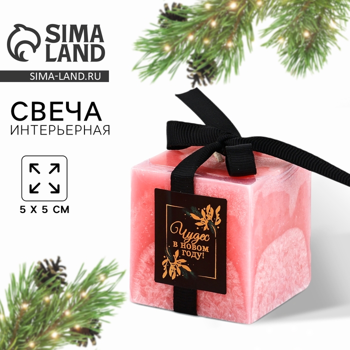 Свеча интерьерная новогодняя «Чудес» на Новый год, розовая, 5 х 5 см