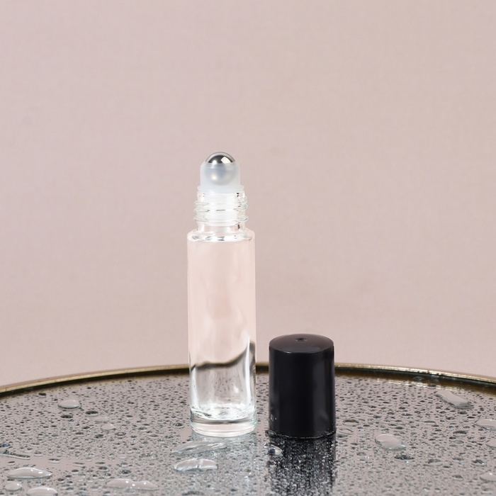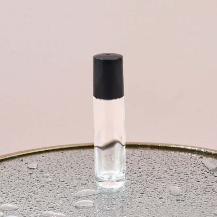 Флакон стеклянный для парфюма, с роликом, 10 мл, цвет прозрачный/чёрный