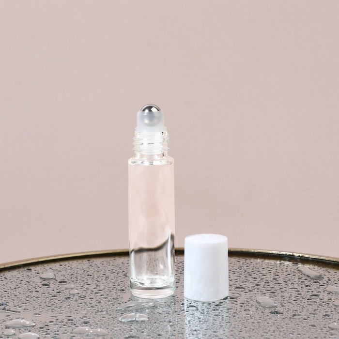 Флакон стеклянный для парфюма, с роликом, 10 мл, цвет прозрачный/белый