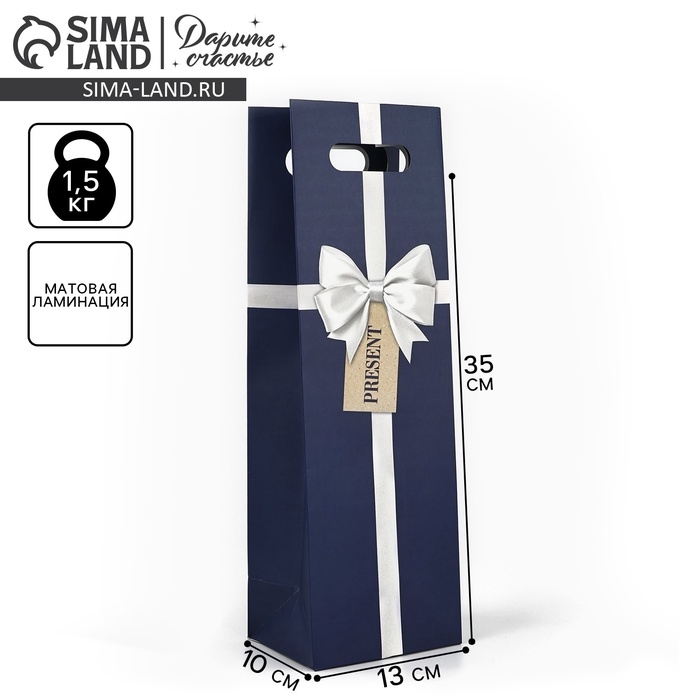 Пакет под бутылку «Подарок», 13 х 10 х 36 см