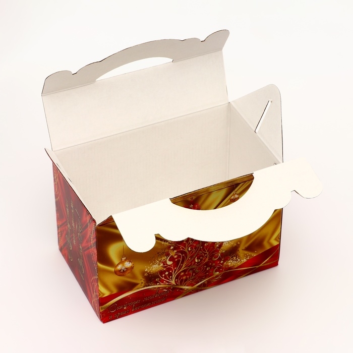 Коробка выполнена из качественных материалов, которые обеспечивают сохранность содержимого. Она имеет яркий и красочный дизайн, который отражает атмосферу Нового года.