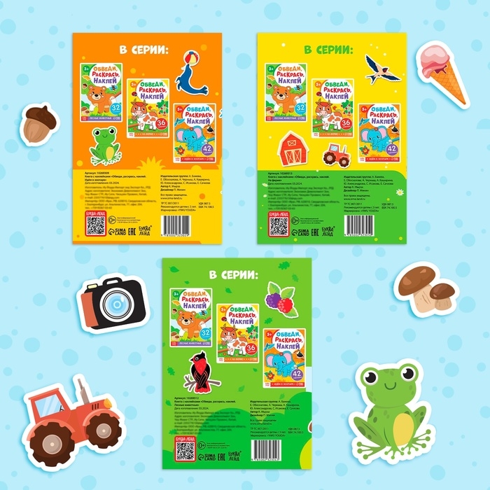 Набор книг «Обведи, раскрась, наклей», 3 шт.