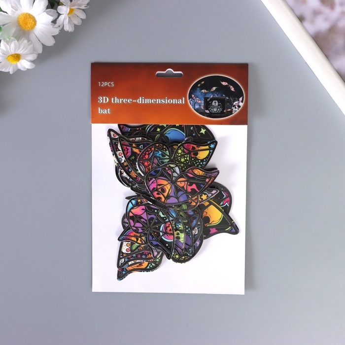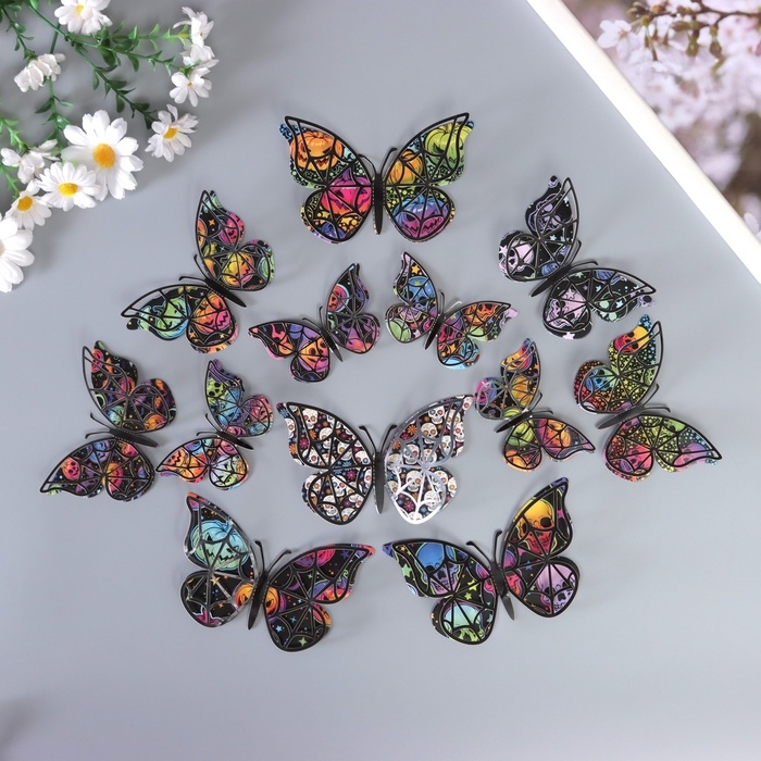Наклейка бумага, пластик "Бабочки на Хэллоуин" чёрные набор 12 шт