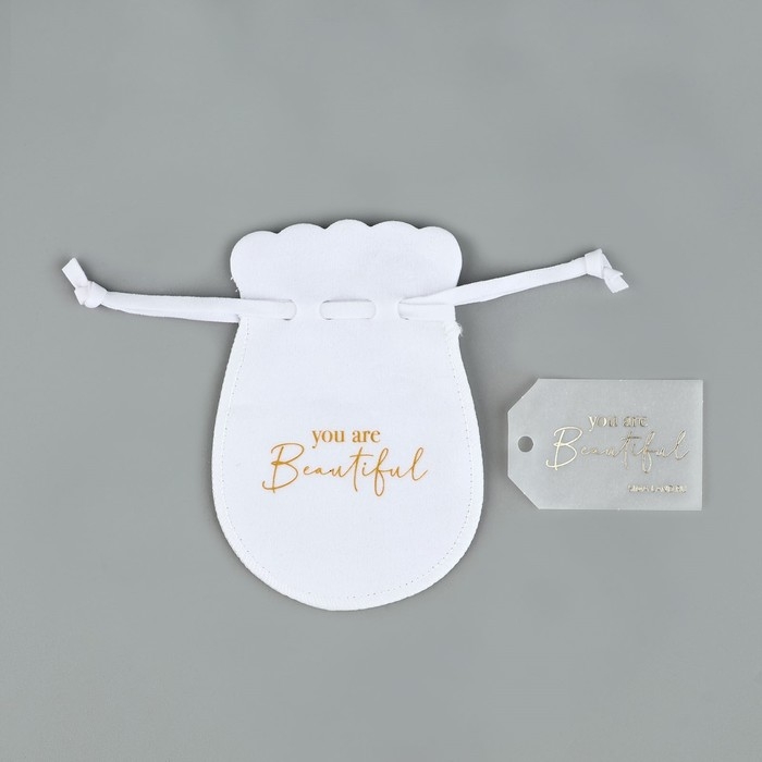 Мешок замшевый «Ты прекрасна», бежевый, тиснение, 9 × 12 см