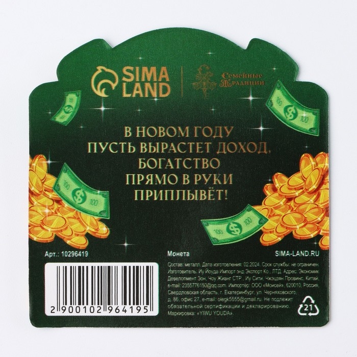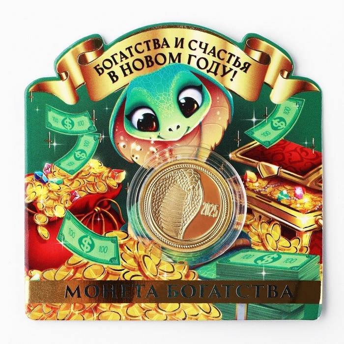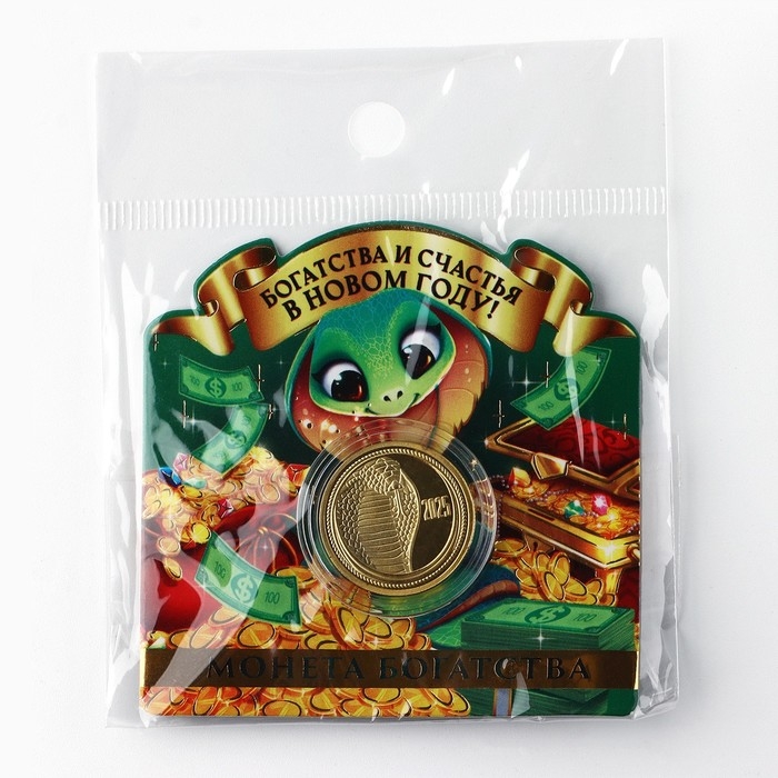 Монета новогодняя «Богатства и счастья» на Новый год, диам. 2,2 см