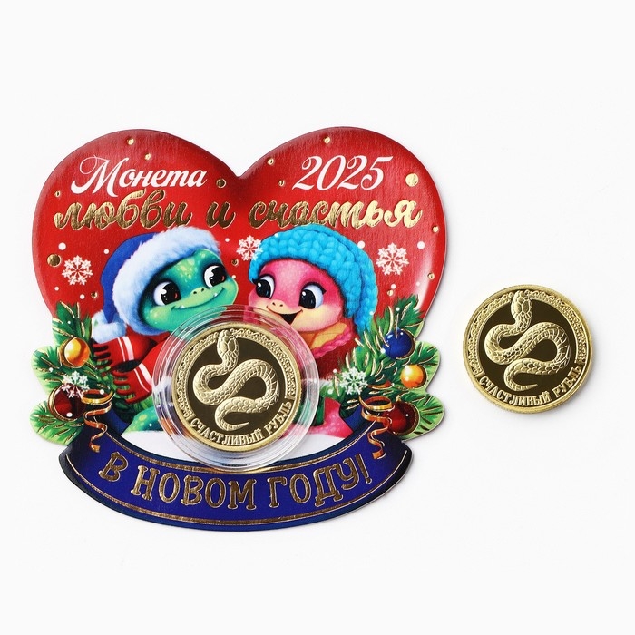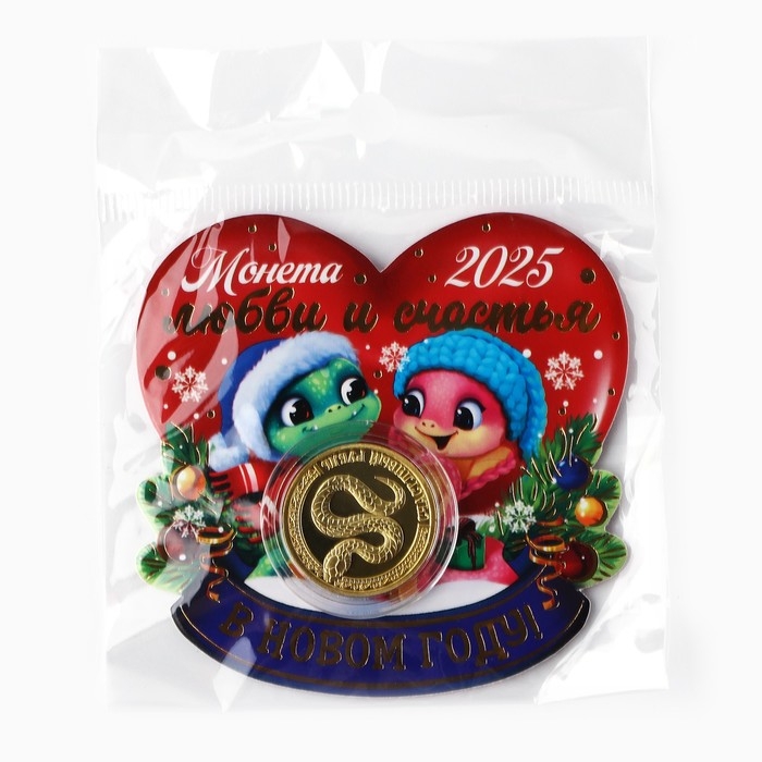 Монета новогодняя «Любви и счастья» на Новый год, диам. 2,2 см