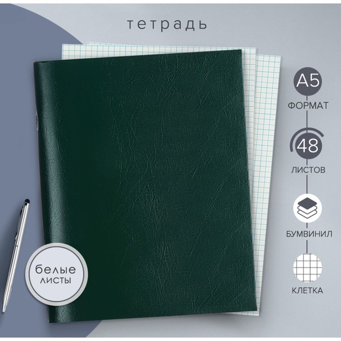 Тетрадь А5, 48 листов в клетку Calligrata бумвинил, блок офсет, зелёный