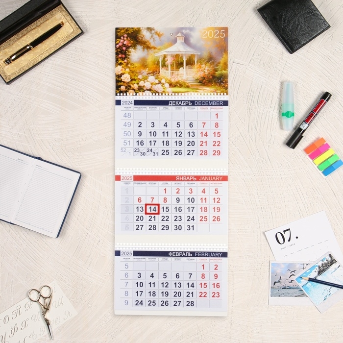 Календарь квартальный трио "Цветущий сад" 2025 год, 29,7 х 75 см