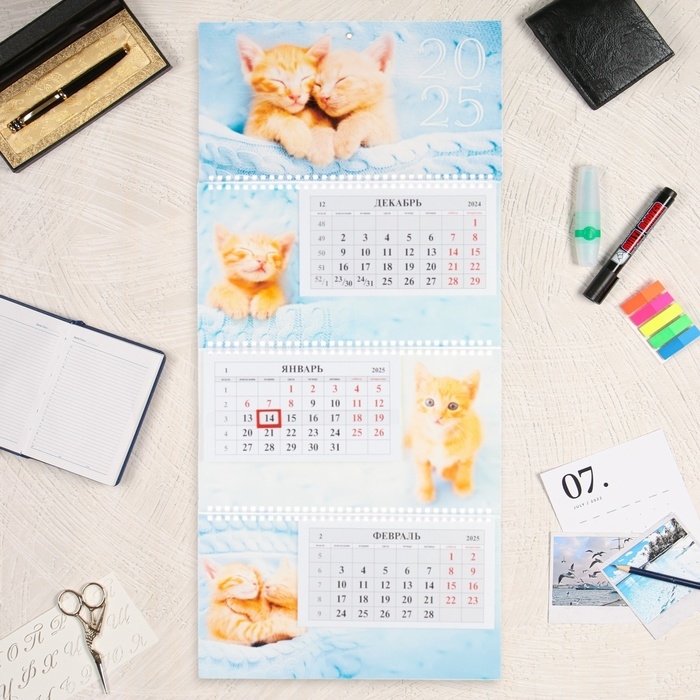 Календарь квартальный трио "Пушистая радость" 2025 год, 29,7 х 65,5 см