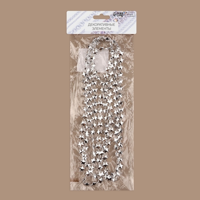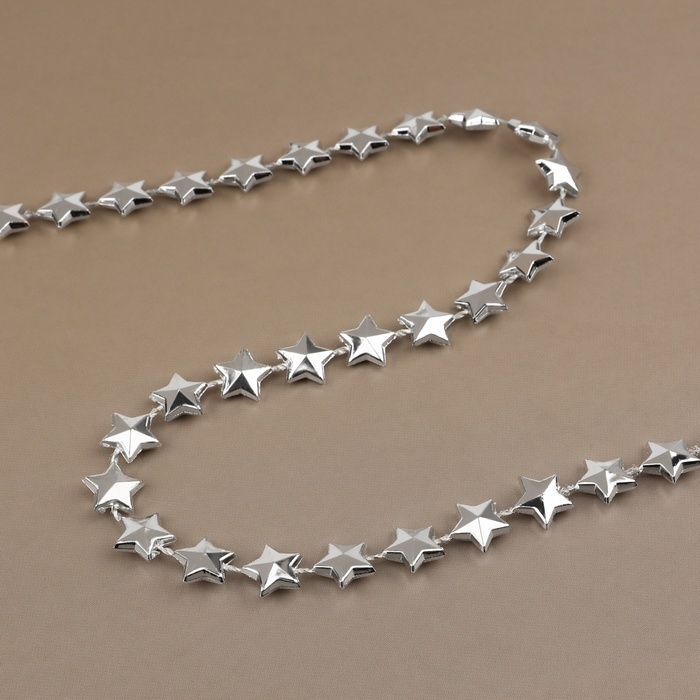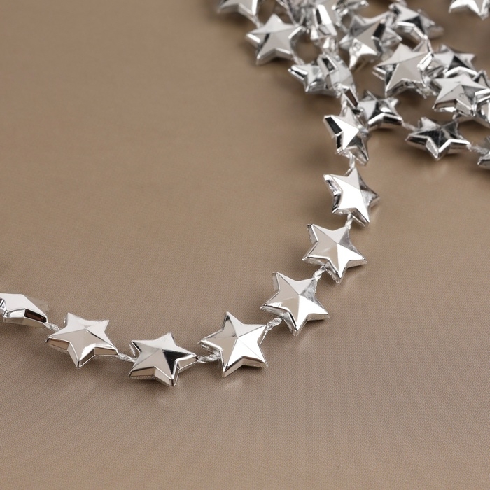 Бусы на нитях «Звёзды», 10 мм, 2 м, цвет серебряный