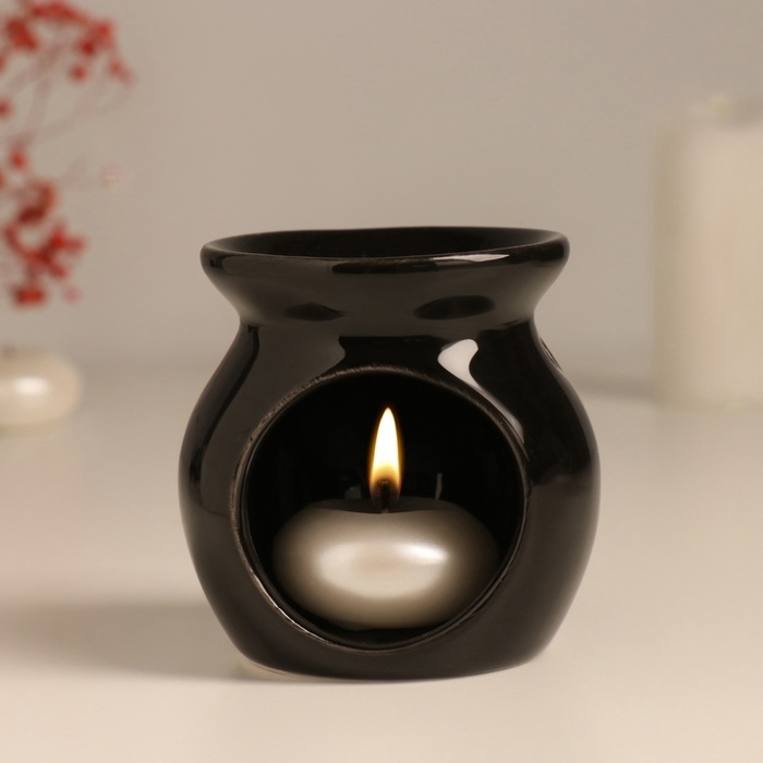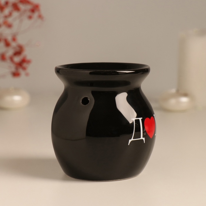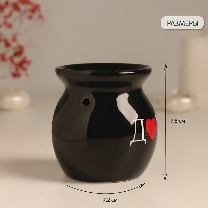 Аромалампа керамика "Д♥м." чёрная 7,2х7,2х7,8 см