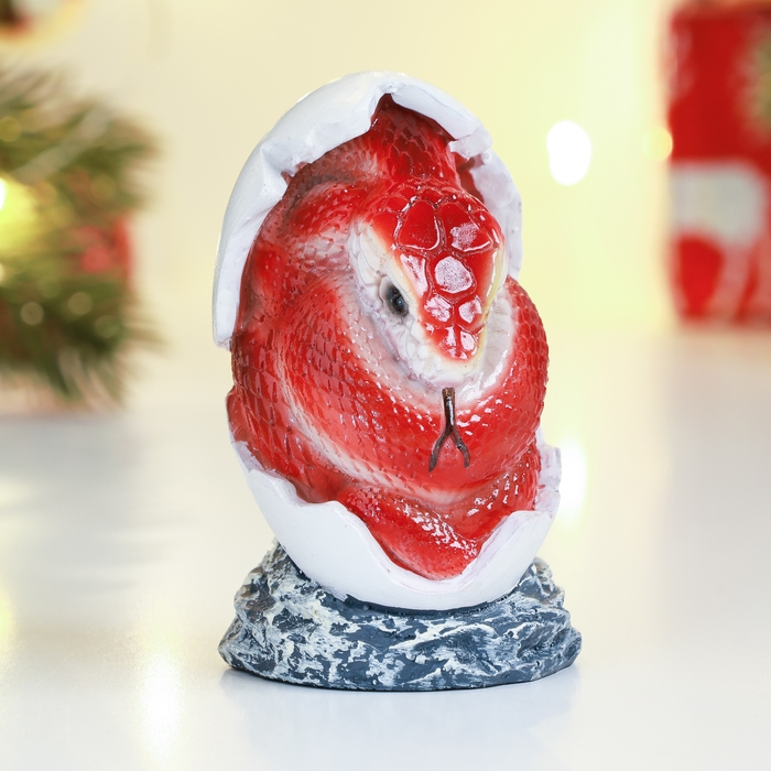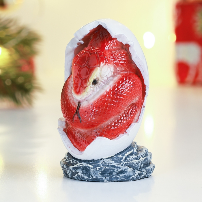 Новый год. Символ 2025. Фигура "Змея в яйце" красный, 4х4х7см