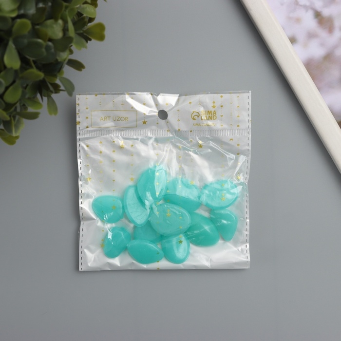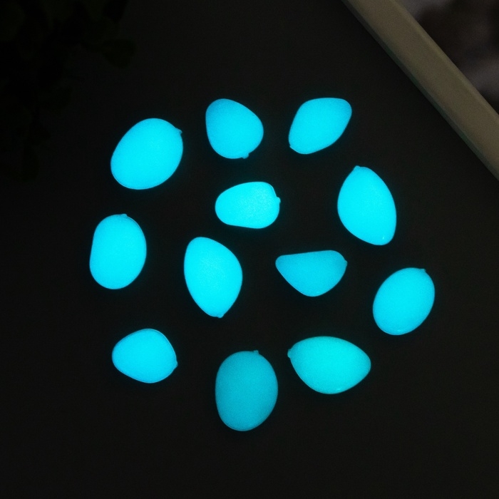 Декор для творчества пластик светится в темноте "Голубые камешки" набор 12 шт