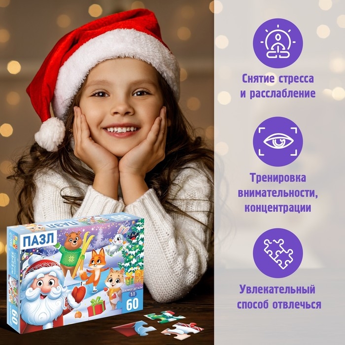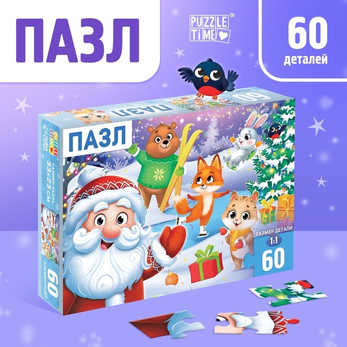 Пазл «Новогодняя компания» — то, что нужно для полезного и интересного досуга! Такой подарок поможет ребёнку скрасить ожидание Нового года, а также потренировать мелкую моторику, внимательность, логическое мышление и память.