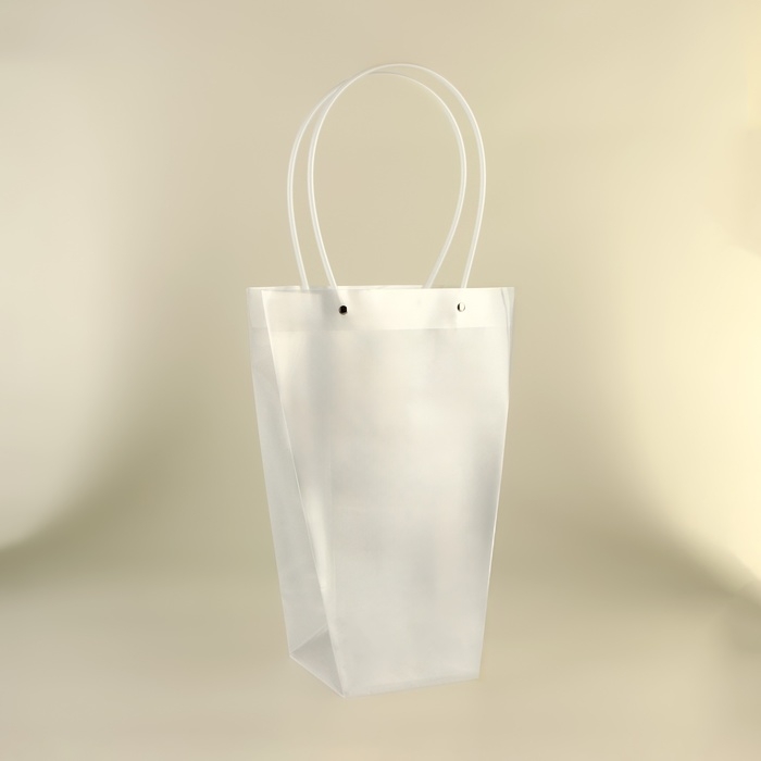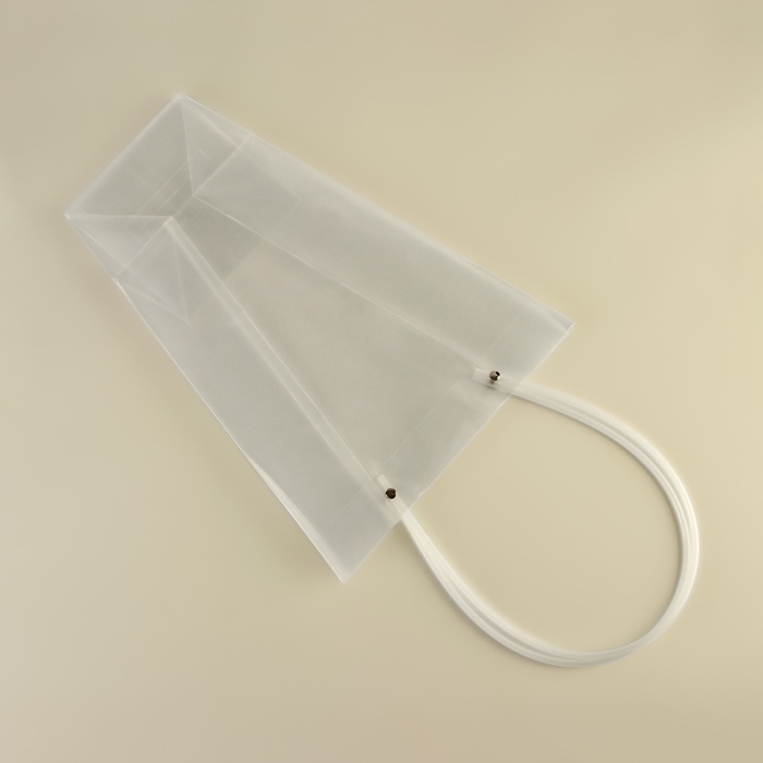 Сумка размером 35х26х13 см отлично подходит для средних и больших букетов, а также цветочных композиций в горшках. Благодаря удобным ручкам, её легко переносить, а прозрачные стенки позволяют цветам оставаться в центре внимания, создавая эффект парящей лёгкости. Лаконичный дизайн сумки идеально дополнит любой букет, придавая ему современный и стильный вид.