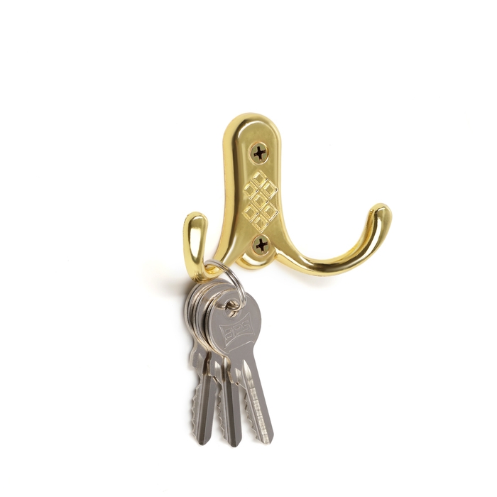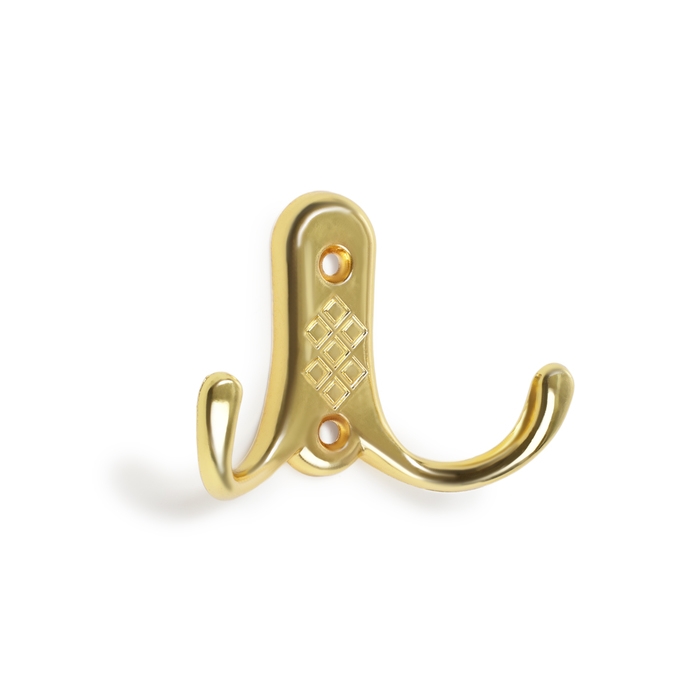 Крючок мебельный ТУНДРА TKD024 LIGHT, двухрожковый, золото