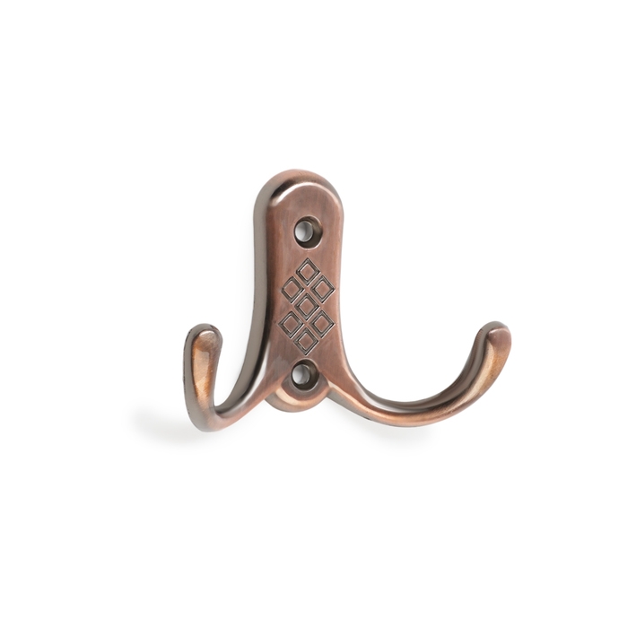 Крючок мебельный ТУНДРА TKD024 LIGHT, двухрожковый, медь