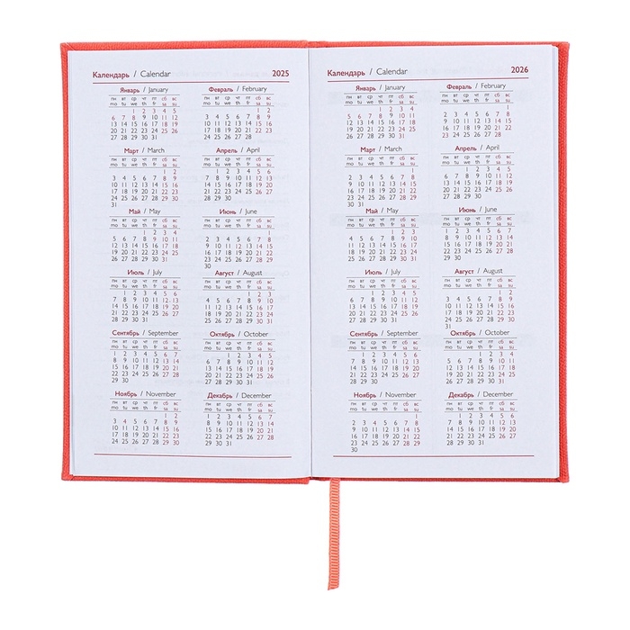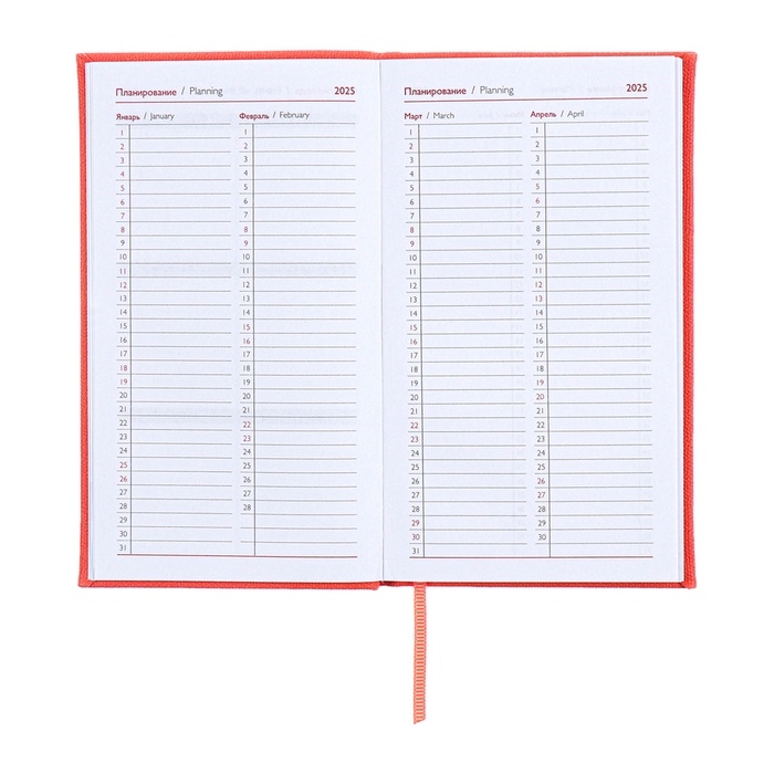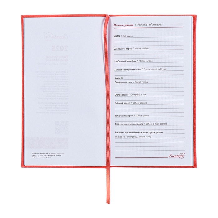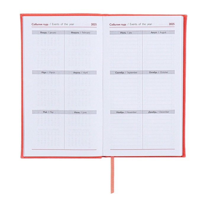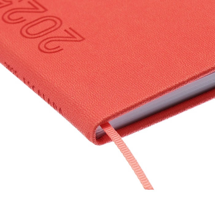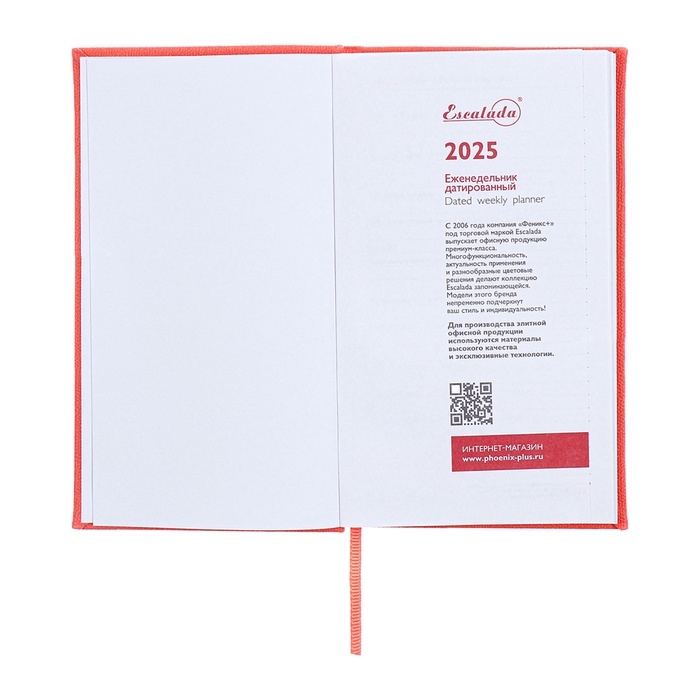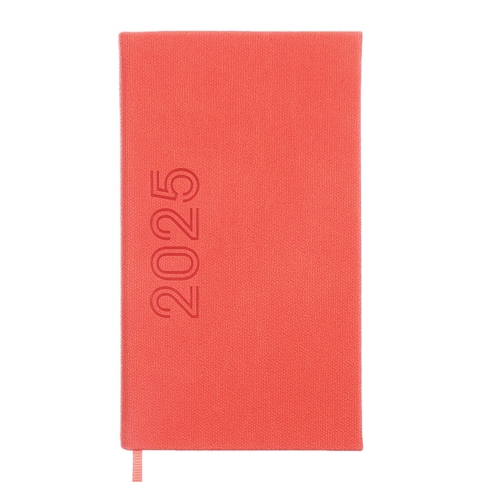 Еженедельник датированный 2025 года, 85х145 мм, 64 листа ESCALADA, твердая обложка из искусственной кожи, блинтовое тиснение, блок 70 г/м², коралловый
