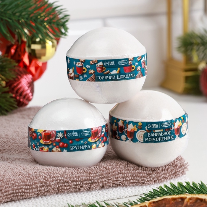 Новый год Набор бомбочек 3 шт "Ванильное мороженное, Брусника, Горячий шоколад"