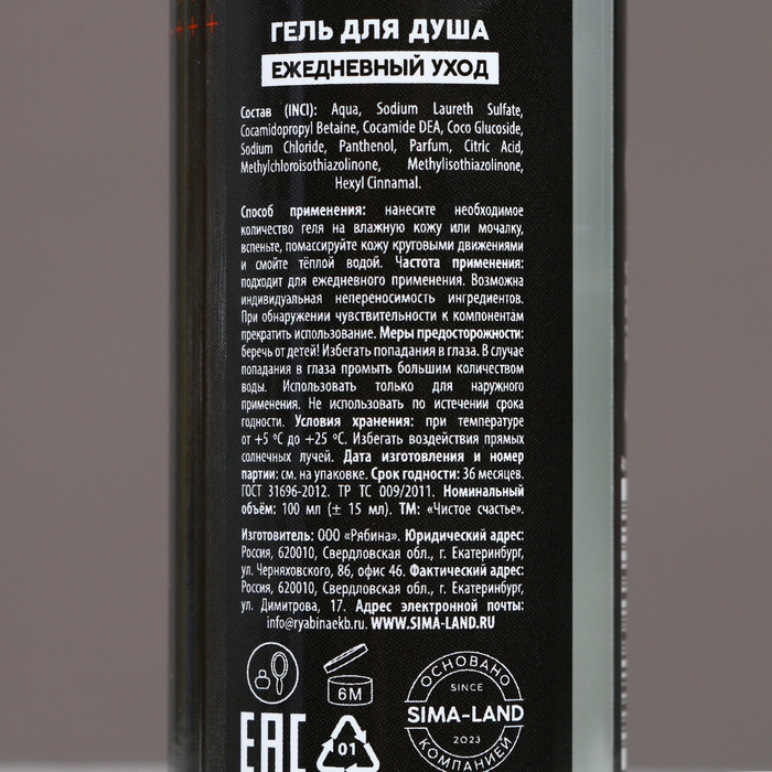 Гель для душа «Тому, кто достигает целей», 100 мл, аромат перца и клюквы, ЧИСТОЕ СЧАСТЬЕ