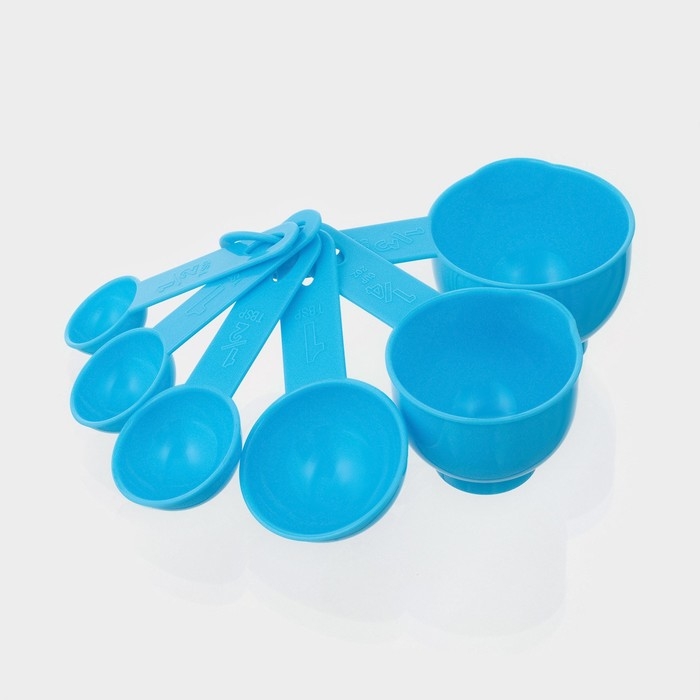 Набор мерных ёмкостей Доляна «Маэстро», 7 предметов: стакан 500 мл, ложки, цвет голубой
