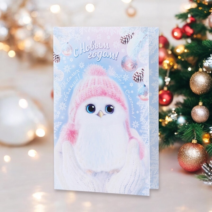 Открытка "С Новым Годом!" глиттер, конгрев, птичка, 12,5 х 19,4 см