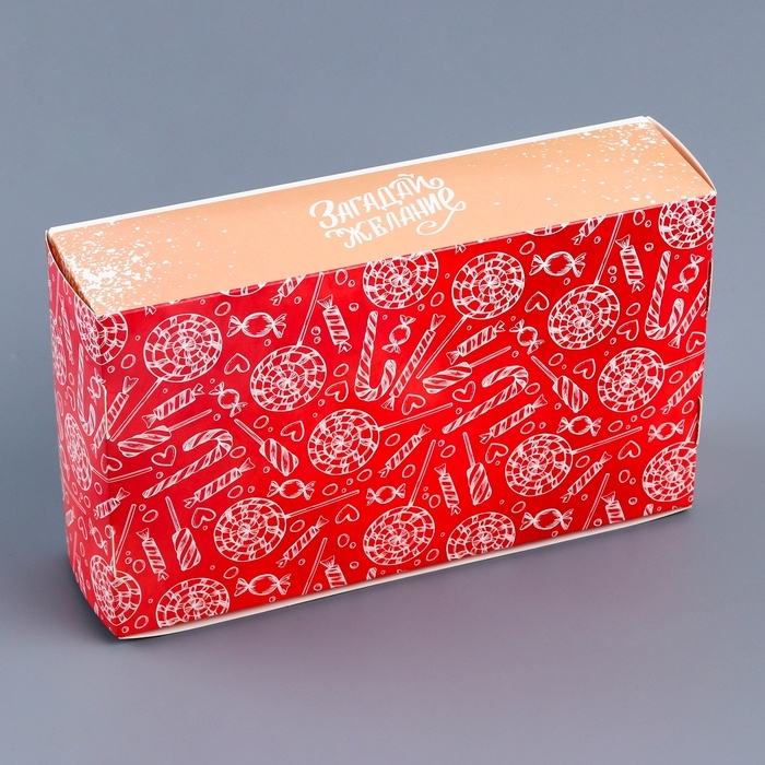 Новый год. Коробка для 5 эклеров подарочная, новогодняя упаковка "Вкусного Нового года", 25,2 х 15 х 6,6 см.